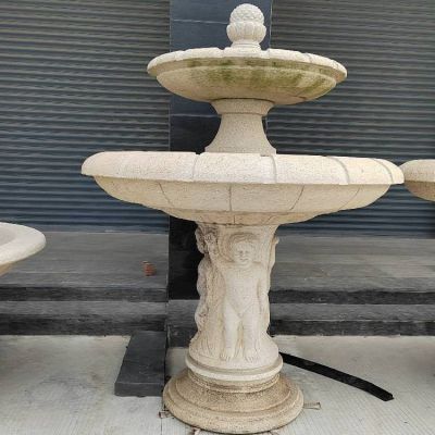花崗巖浮雕歐式二層流水噴泉?jiǎng)e墅擺件