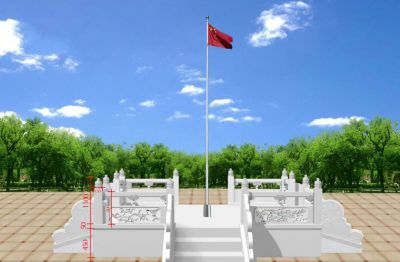 校園廣場(chǎng)擺放漢白玉浮雕花紋防護(hù)欄桿升旗臺(tái)