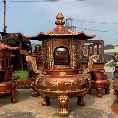 佛教鑄銅多層浮雕燒紙化寶佛塔香爐