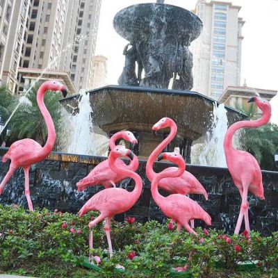 玻璃鋼仿銅戶外園林大型仿真動物火烈鳥