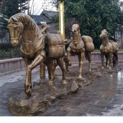 景區(qū)廣場(chǎng)擺放大型玻璃鋼仿銅客商馬托行李雕塑