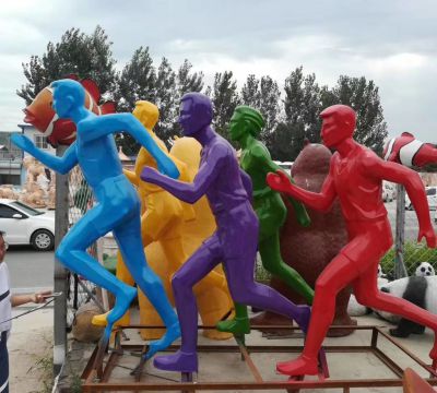 公園廣場擺放彩繪玻璃鋼跑步人物雕塑
