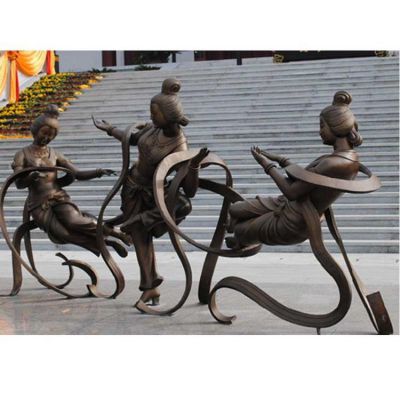 城市文化廣場擺放玻璃鋼仿銅古代飛天舞蹈人物雕塑