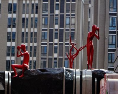 小區(qū)廣場擺放玻璃鋼抽象人物主題景觀雕塑