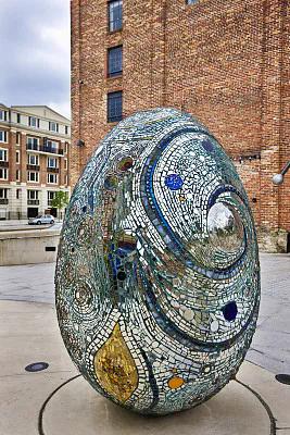 城市街道創(chuàng)意不銹鋼彩繪抽象藝術(shù)雞蛋雕塑