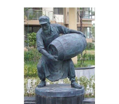 城市街道不銹鋼仿銅人物抱著酒桶景觀酒文化雕塑