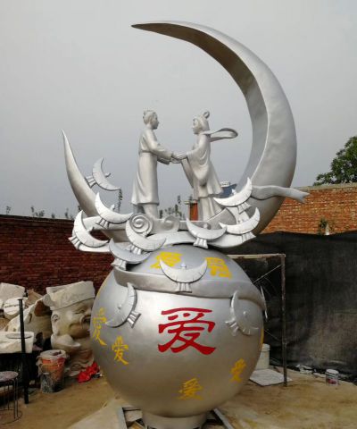 公園古代神話傳說(shuō)不銹鋼牛郎織女相會(huì)雕塑
