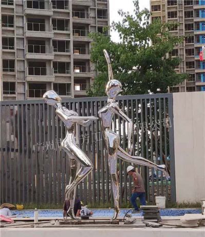 鏡面不銹鋼小區(qū)跳舞人物雕塑