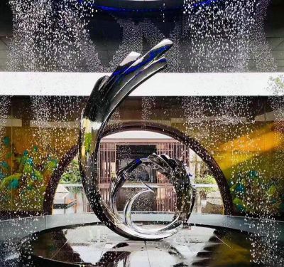 不銹鋼海豚旋轉(zhuǎn)游泳雕塑城市廣場(chǎng)噴泉水景擺件