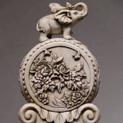 庭院別墅門口一對(duì)仿古做舊浮雕大象抱鼓石雕塑