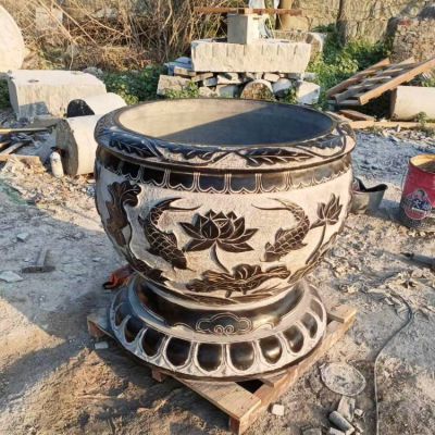 雙魚青石石雕蓮花水缸雕塑