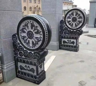 園林庭院青石仿古花浮雕抱鼓石雕塑