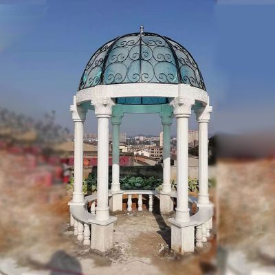 別墅陽臺擺放圓形羅馬柱大理石涼亭雕塑