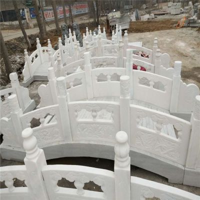 漢白玉石拱橋園林庭院魚池流水造景石雕欄桿小石橋