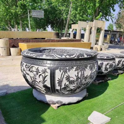 庭院戶外仿古漢白玉浮雕流水花缸魚缸擺件