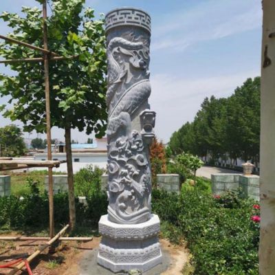 寺院裝飾青石浮雕龍柱漢白玉盤龍柱