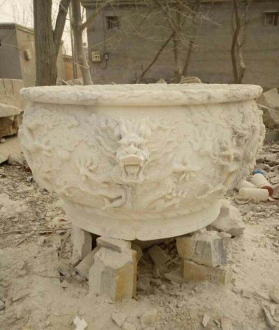 漢白玉浮雕石缸 花崗巖盤龍庭院石缸雕塑