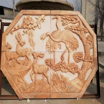 庭院晚霞紅浮雕玄關影壁畫雕塑