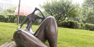 公園草坪坐著的抽象景觀銅雕女孩雕塑