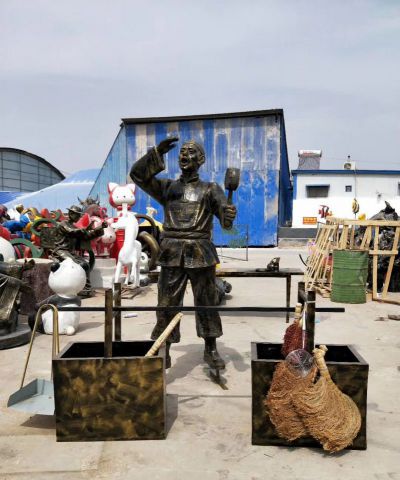 步行街吹糖人的人物玻璃鋼仿銅雕塑