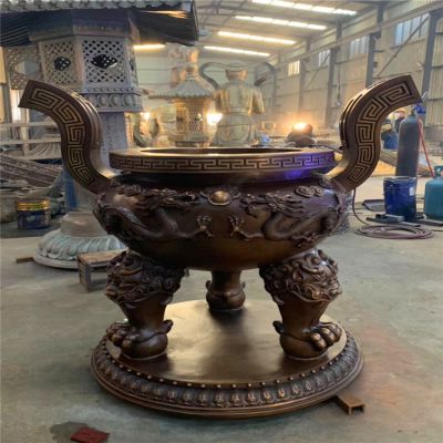 景區(qū)廣場擺放雙龍浮雕鑄銅香爐雕塑