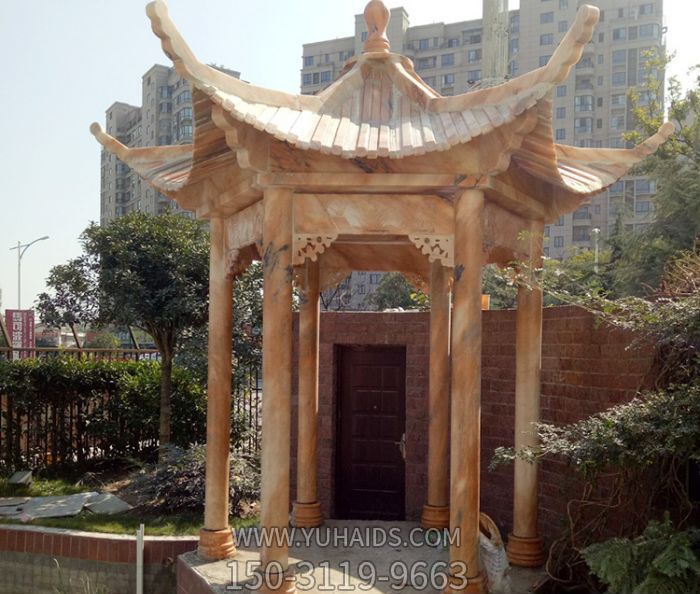 庭院六角仿古裝飾涼亭晚霞紅石雕雕塑.圖片展示
