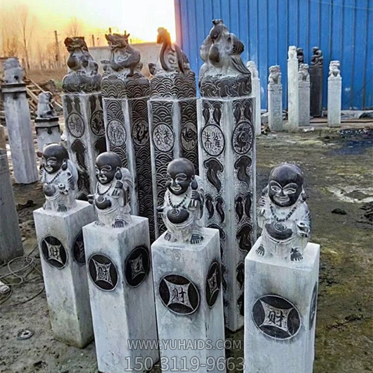 酒店裝飾復(fù)古招財(cái)大理石人物拴馬柱雕塑 酒店裝飾復(fù)古招財(cái)大理石人物拴馬柱雕塑