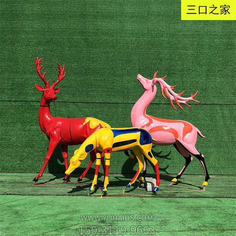 玻璃鋼卡通彩繪景區(qū)園林動物景觀梅花鹿雕塑.圖片展示