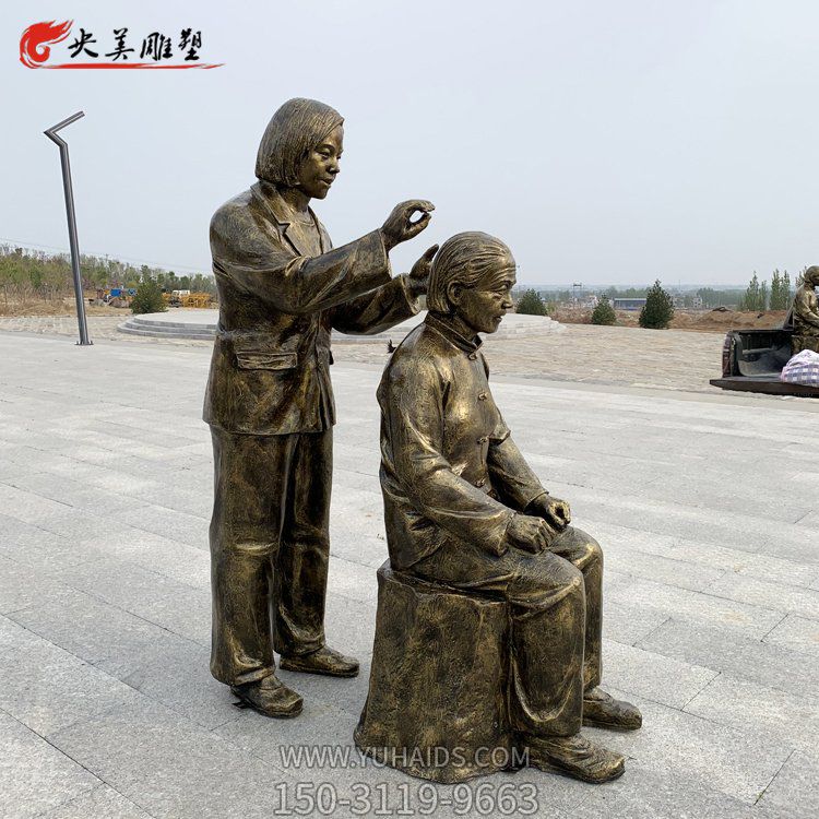 幫母親梳頭的情景人物擺件 街道戶外雕塑 幫母親梳頭的情景人物擺件 街道戶外雕塑