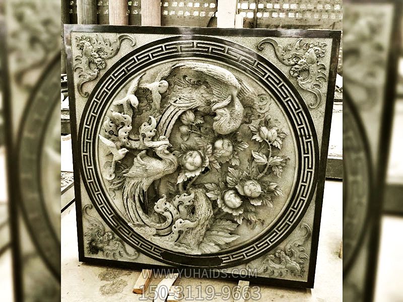 酒店裝飾鳳凰浮雕青石花窗雕塑 酒店裝飾鳳凰浮雕青石花窗雕塑