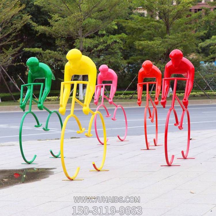不銹鋼彩繪園林校園騎自行車的抽象人物雕塑 不銹鋼彩繪園林校園騎自行車的抽象人物雕塑
