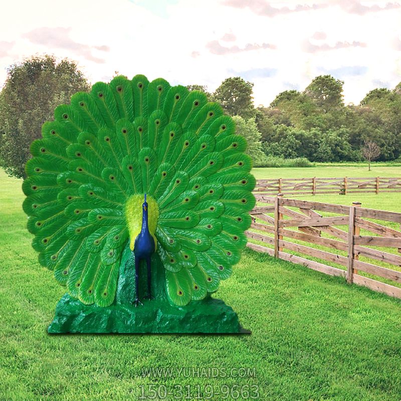 草坪上一只自戀的玻璃鋼彩繪孔雀雕塑 草坪上一只自戀的玻璃鋼彩繪孔雀雕塑