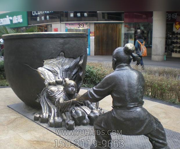 街道寓意故事司馬光砸缸銅雕人物景觀缸雕塑.圖片展示