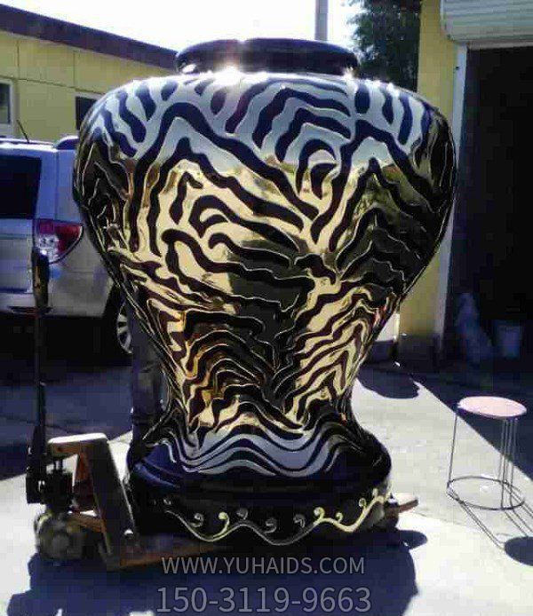 酒店花園浮雕鏡面玻璃鋼花瓶雕塑.圖片展示