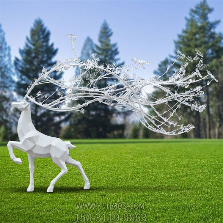 玻璃鋼幾何抽象園林草地梅花鹿樹枝景觀小品動物雕塑.詳細說明