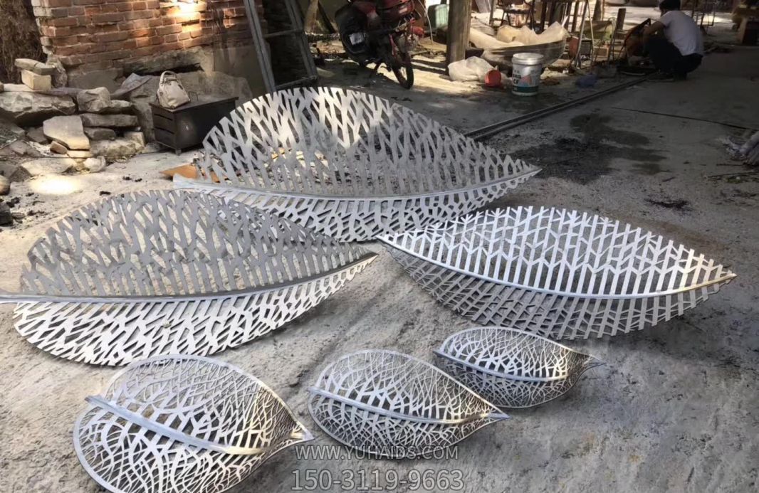 酒店戶外草坪不銹鋼鏤空樹葉雕塑.圖片展示