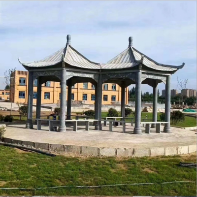 村莊廣場擺放大理石雕刻古建六角涼亭擺件雕塑