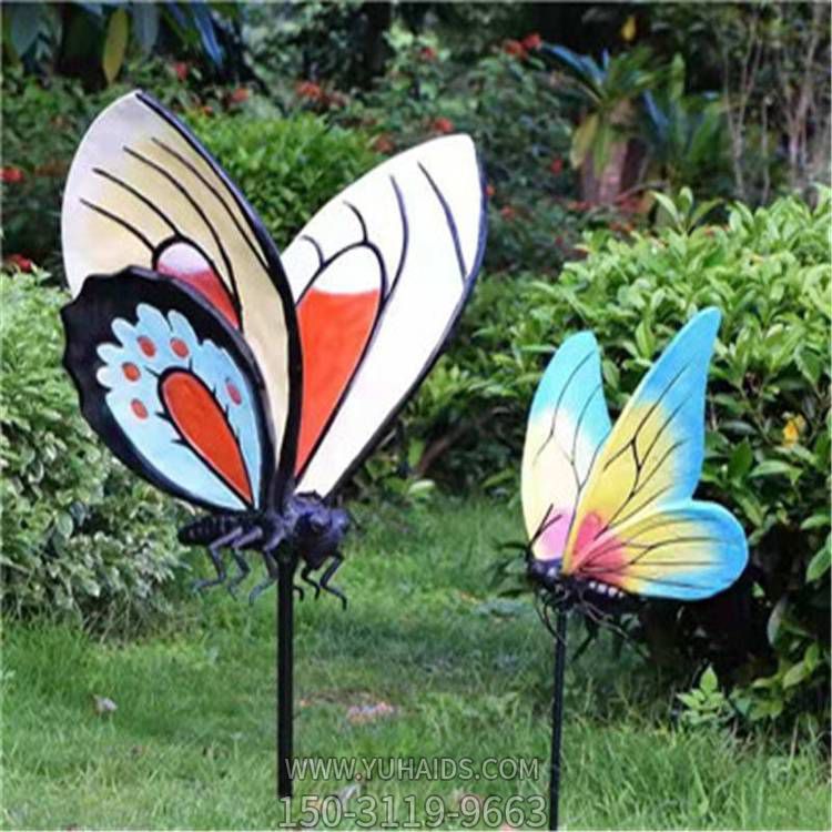 公園綠地玻璃鋼仿真彩繪動(dòng)物蝴蝶雕塑.圖片展示