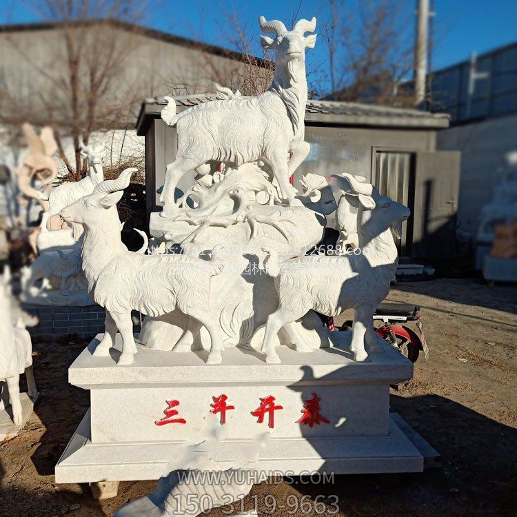 石雕晚霞紅山羊十二生肖戶外廣場動物三羊開泰雕塑.圖片展示