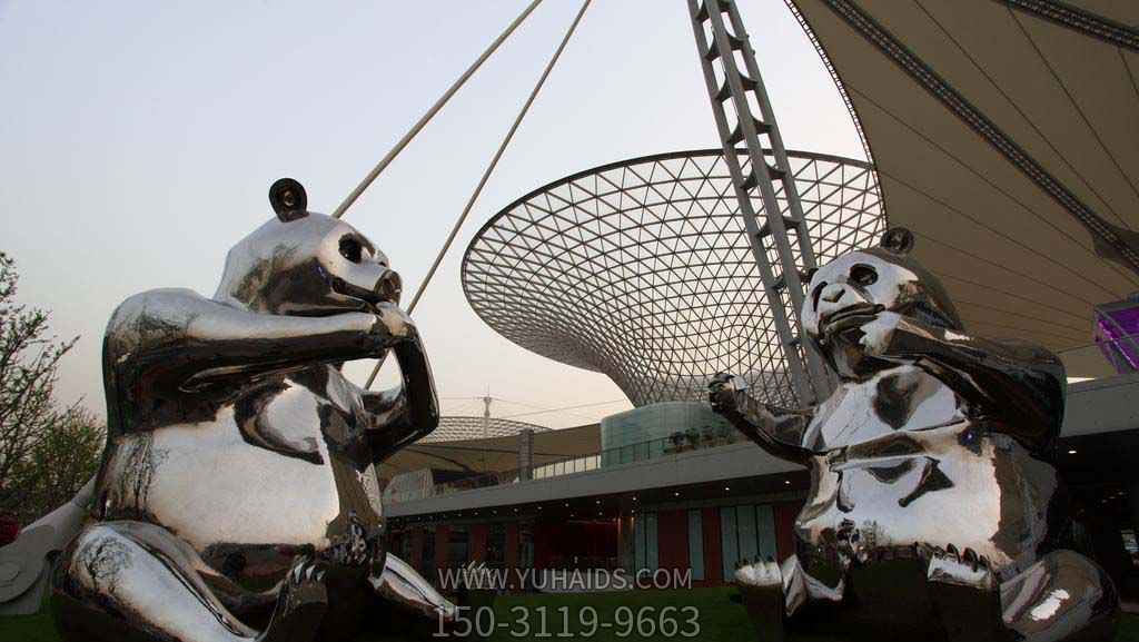 動(dòng)物園擺放鏡面不銹鋼卡通熊貓雕塑.圖片展示