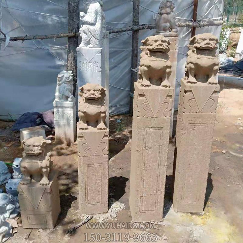 別墅庭院門前擺放獅子拴馬柱雕塑 別墅庭院門前擺放獅子拴馬柱雕塑