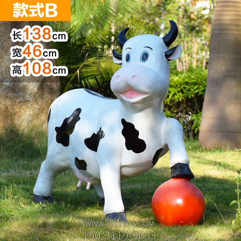 城市街邊一只踢球的玻璃鋼牛雕塑.參數(shù)說明