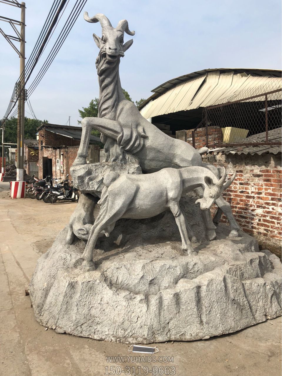 景區(qū)生肖羊青石石雕吉祥如意三陽開泰雕塑.圖片展示