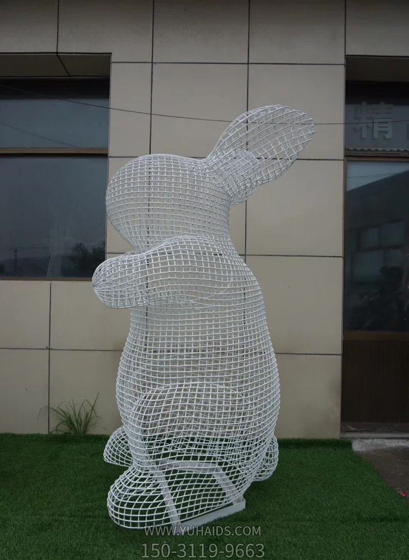 別墅一只不銹鋼鏤空抽象兔子雕塑 別墅一只不銹鋼鏤空抽象兔子雕塑
