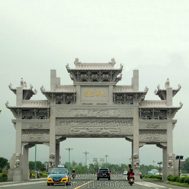 | 產(chǎn)品標(biāo)題 | 城市街道擺放青石浮雕新中式三門五樓牌坊雕塑 |