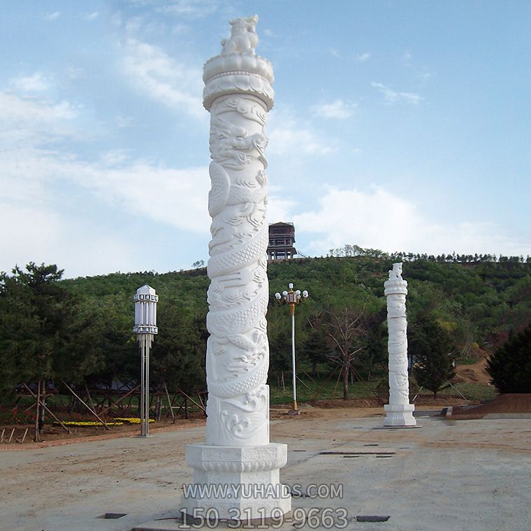 石雕漢白玉廣場擺放龍柱雕塑 石雕漢白玉廣場擺放龍柱雕塑