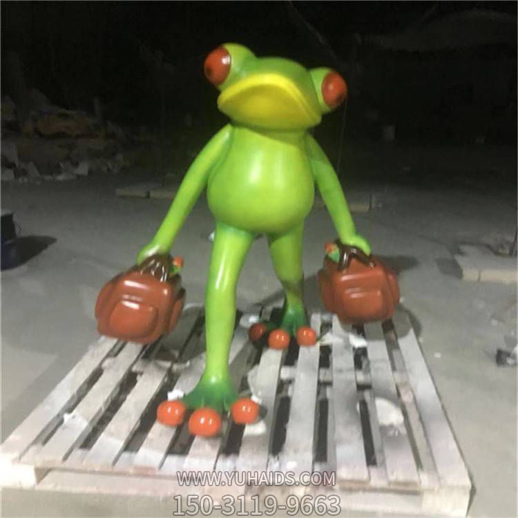 商場(chǎng)擺放玻璃鋼卡通提行李青蛙公仔雕塑 商場(chǎng)擺放玻璃鋼卡通提行李青蛙公仔雕塑