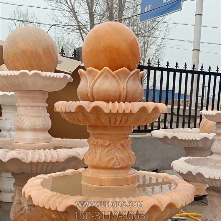 晚霞紅大理石別墅小區(qū)風(fēng)水球雕塑.圖片展示