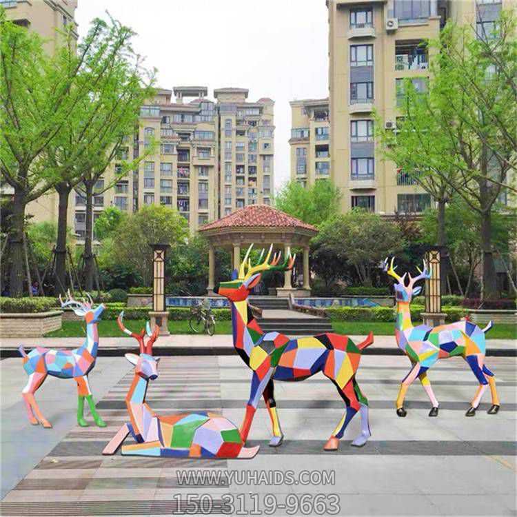 | 產(chǎn)品標題 | 別墅小區(qū)不銹鋼幾何彩繪塊面梅花鹿雕塑 |