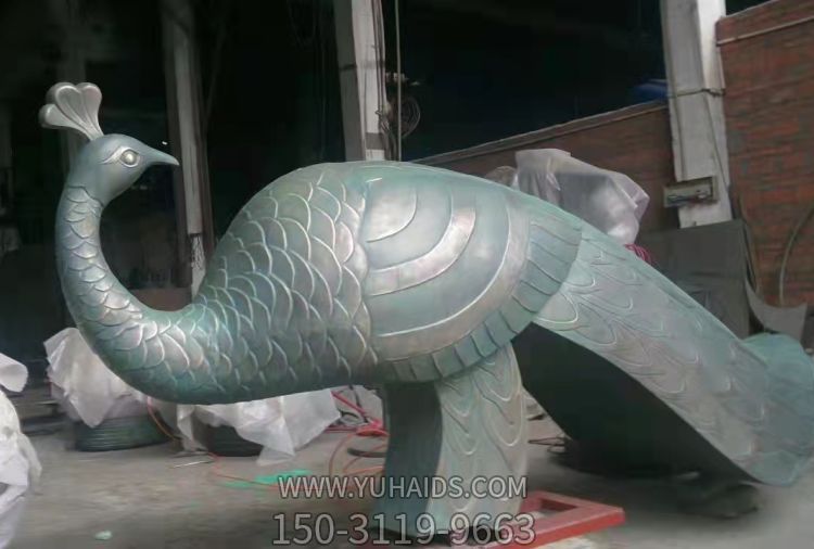 景點(diǎn)擺放黃銅鍛造孔雀園林景觀雕塑.圖片展示